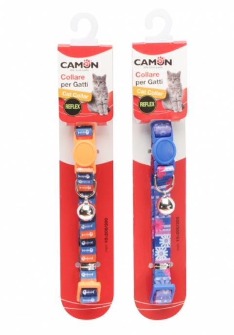 Szép nyakörv macskáknak, reflex betétekkel, biztonsági kioldó rendszerrel